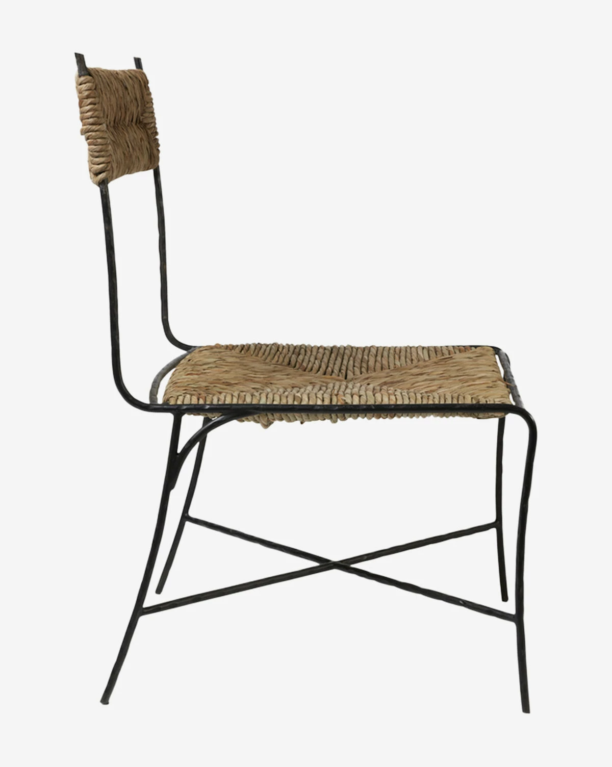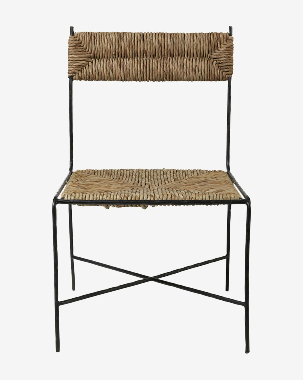 Chic and minimal, the Rivy Chair makes the most of its unique material mix. Featuring a slim base crafted from iron, and a seat and back crafted from natural twisted rush, this chair brings a modern update to your dining room table.