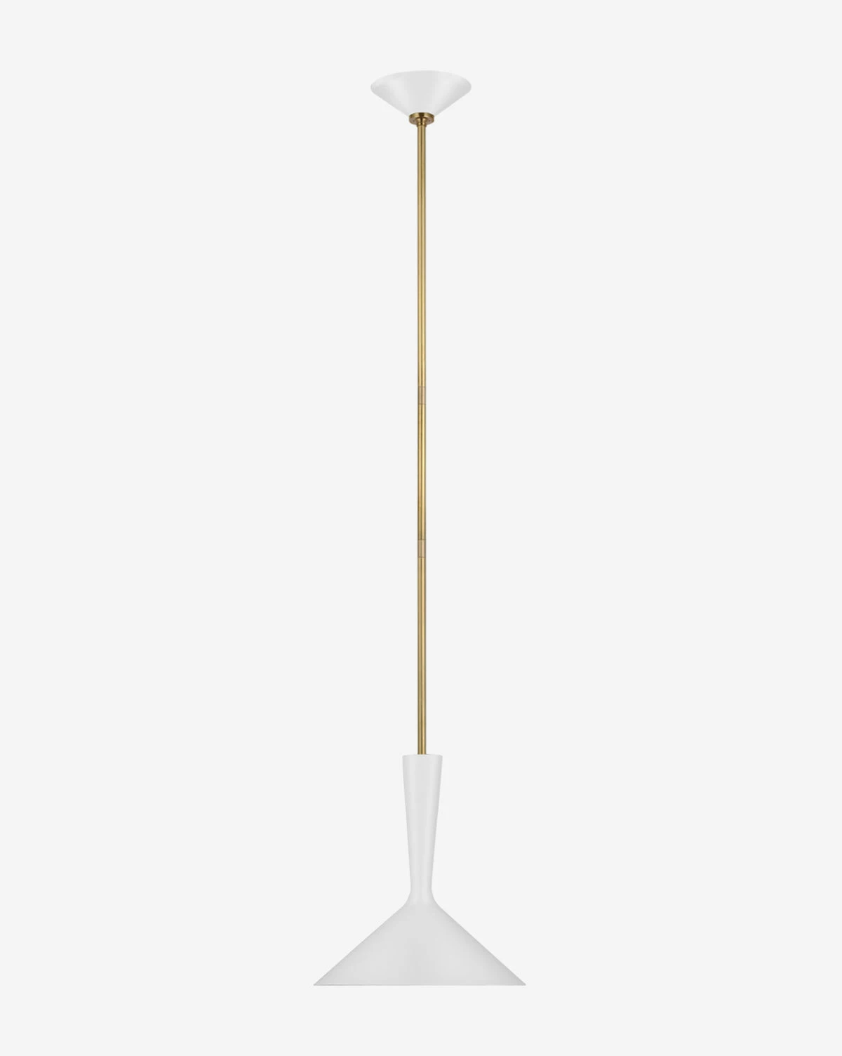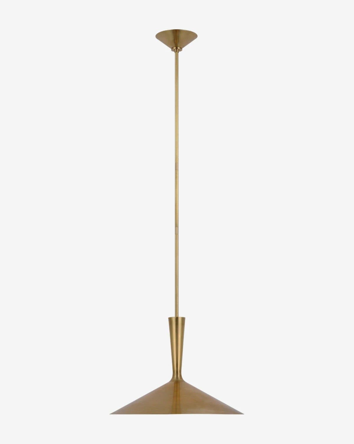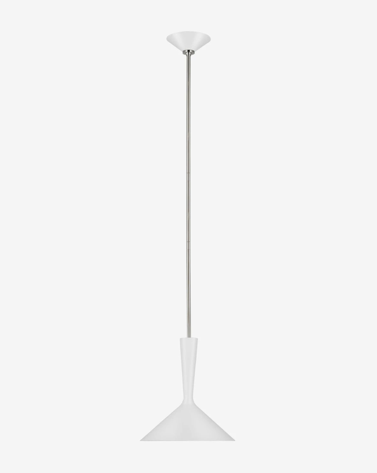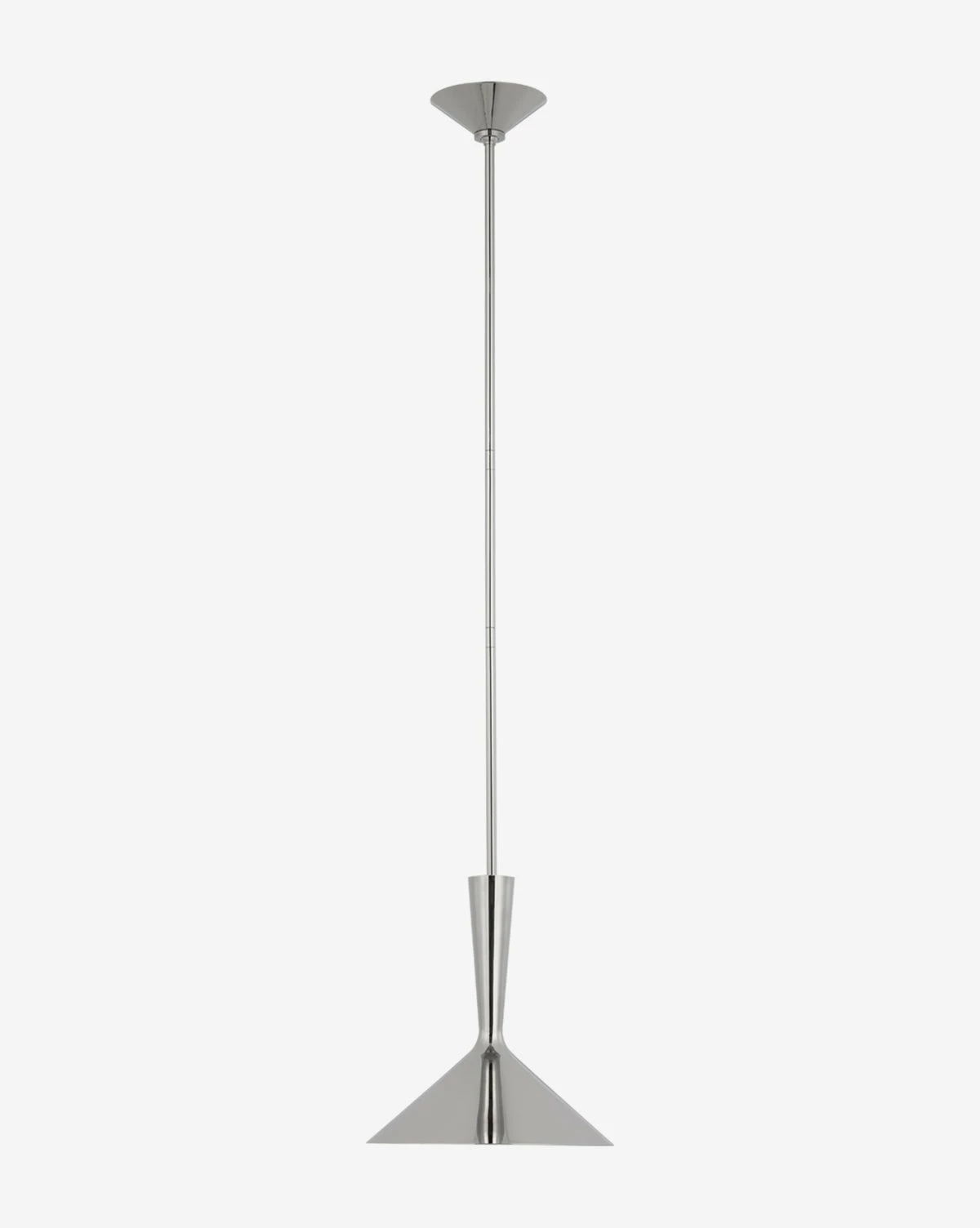 With a tapered, geometrical shade, the Rosetta Pendant is an updated take on the classic pendant design. Available in several bold finishes, the pendant presents a distinct silhouette and warm light in your home.