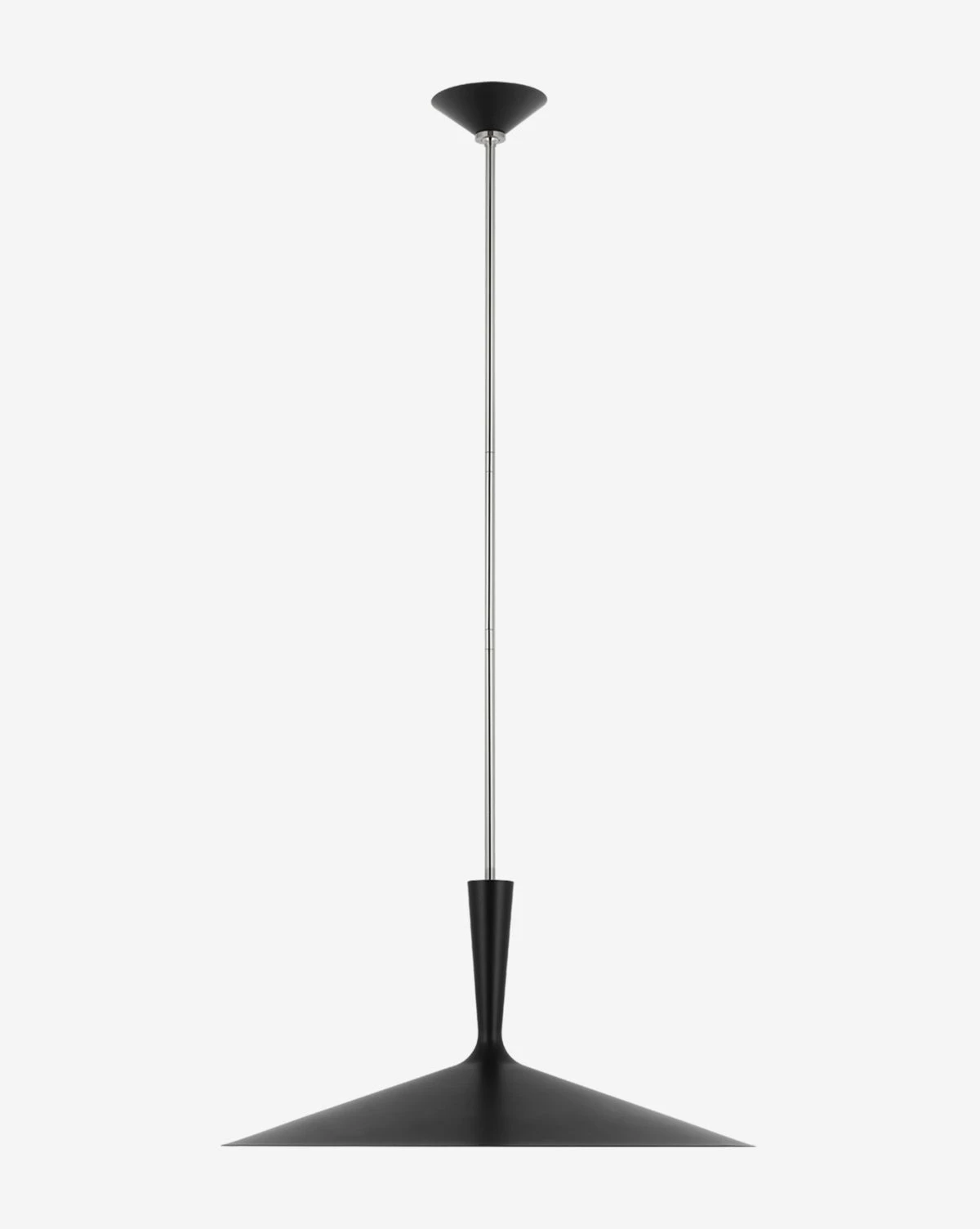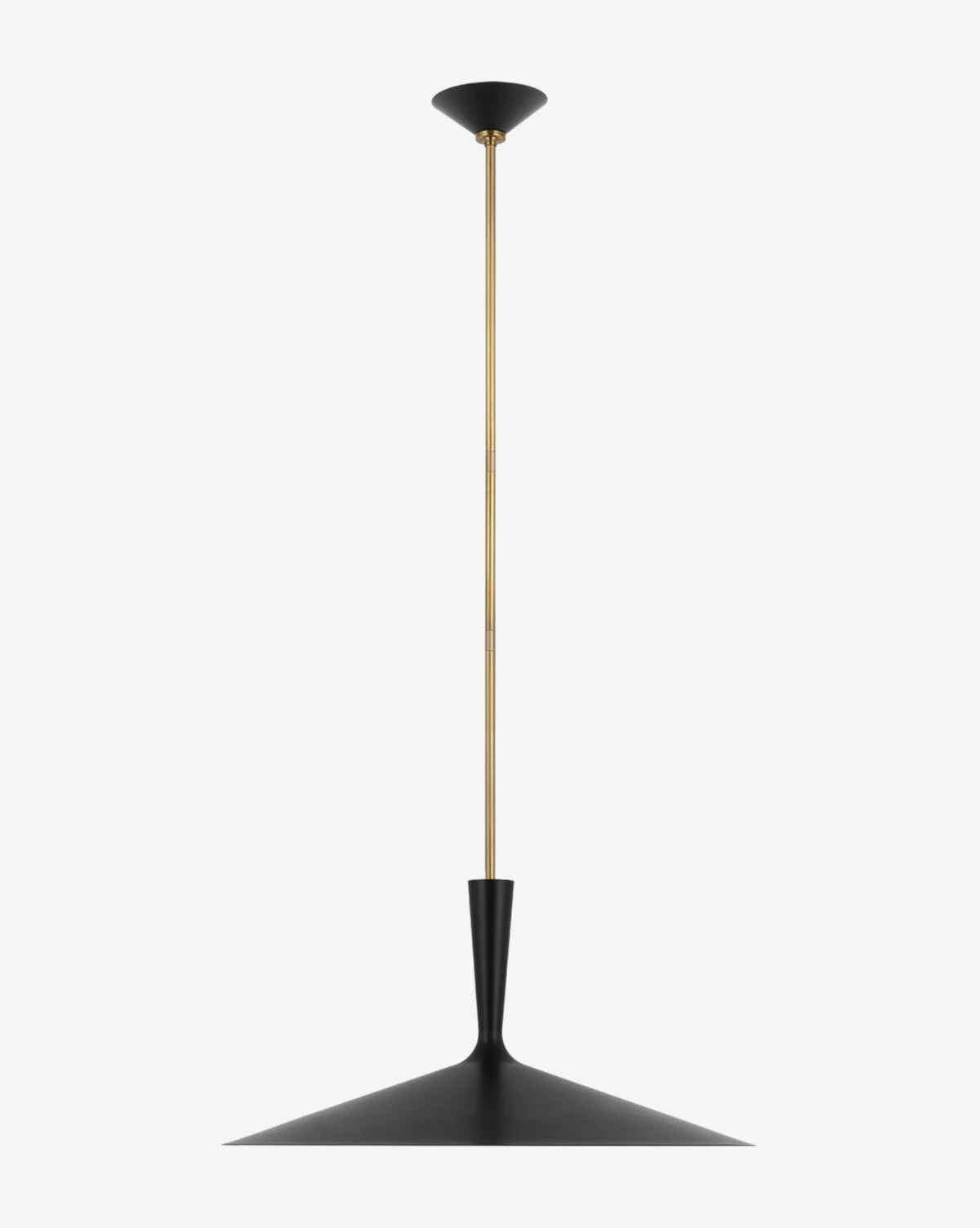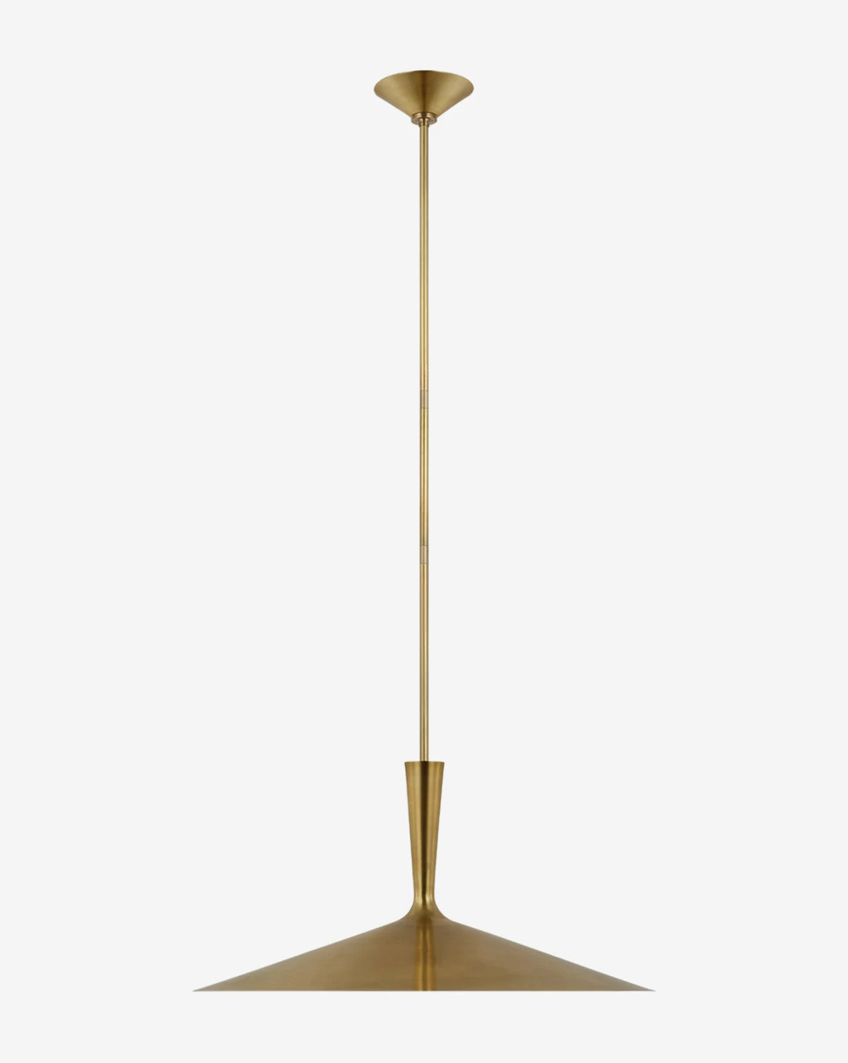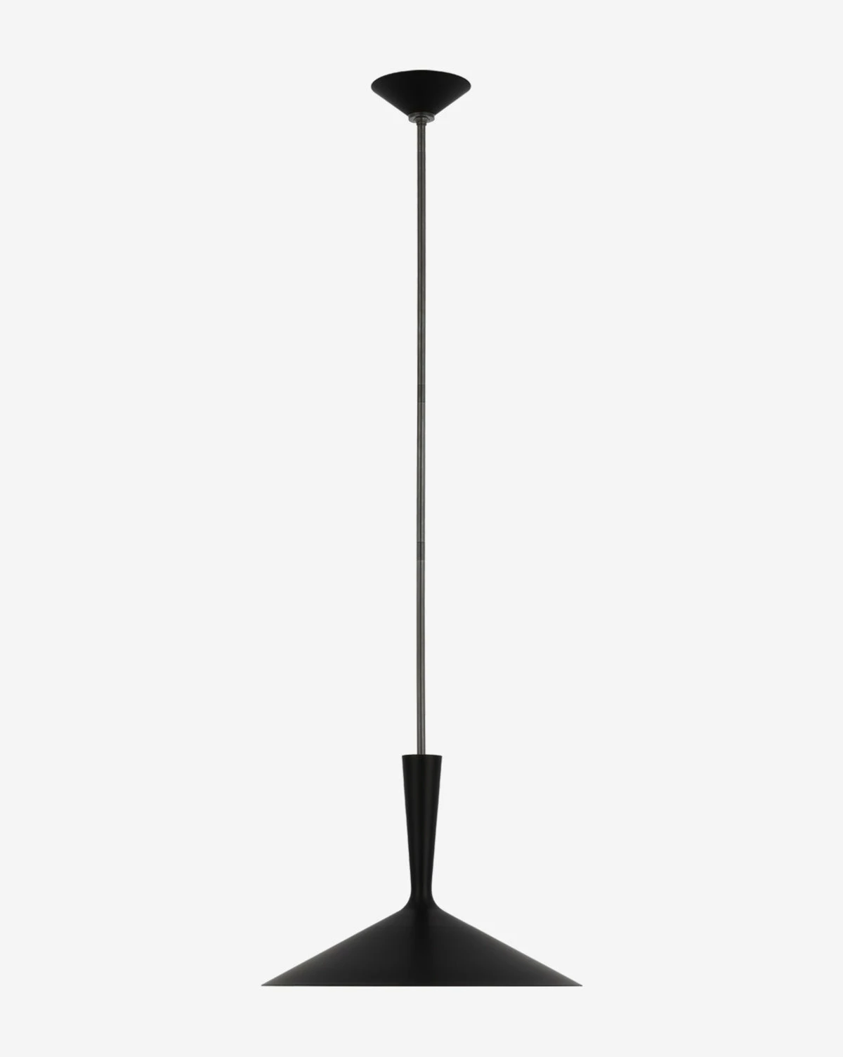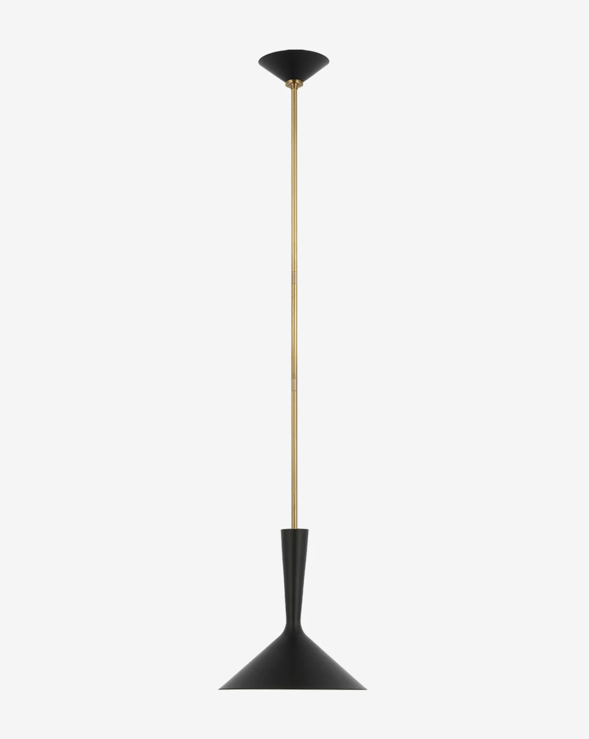 With a tapered, geometrical shade, the Rosetta Pendant is an updated take on the classic pendant design. Available in several bold finishes, the pendant presents a distinct silhouette and warm light in your home.