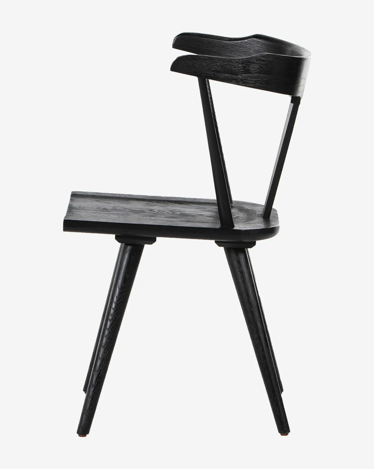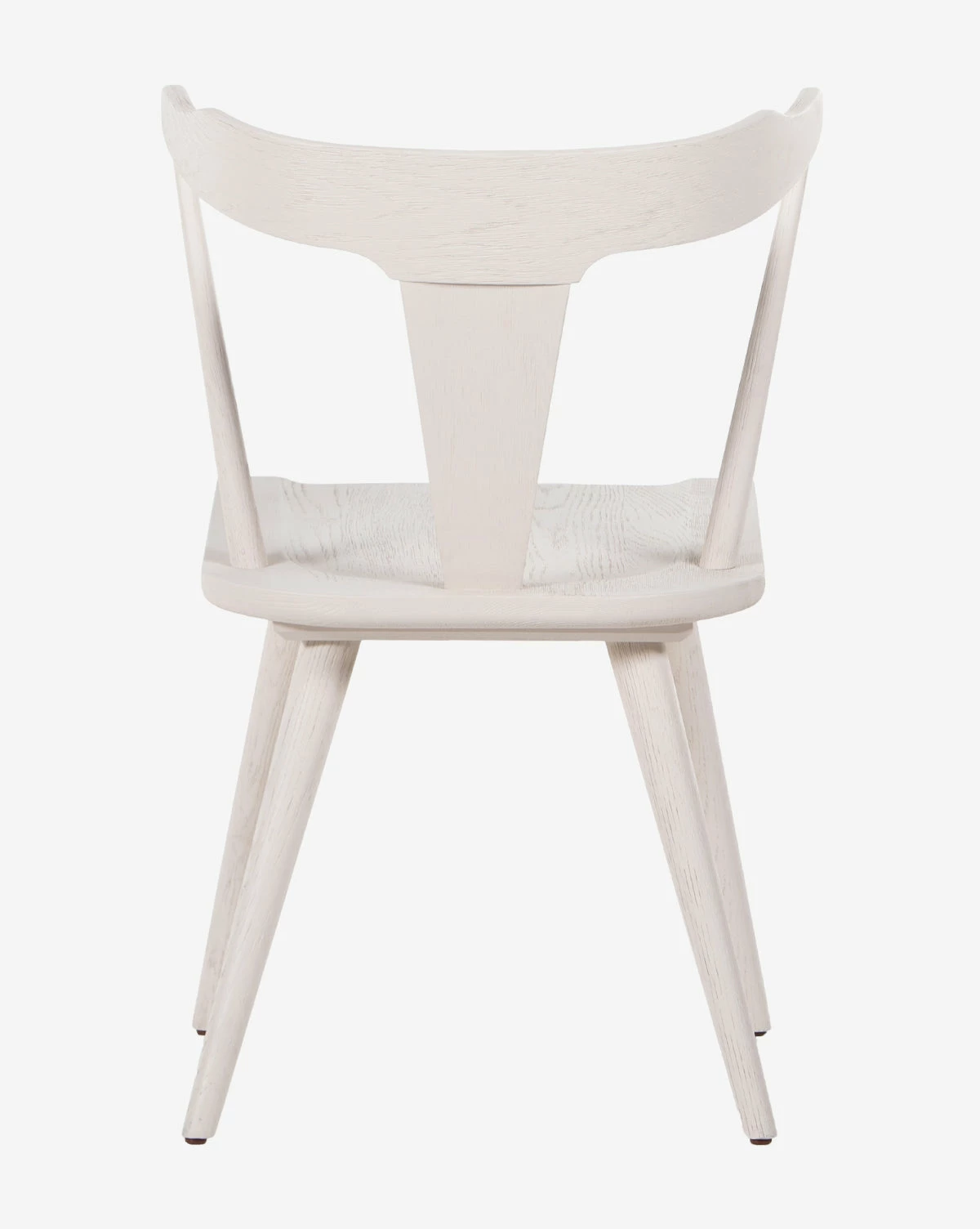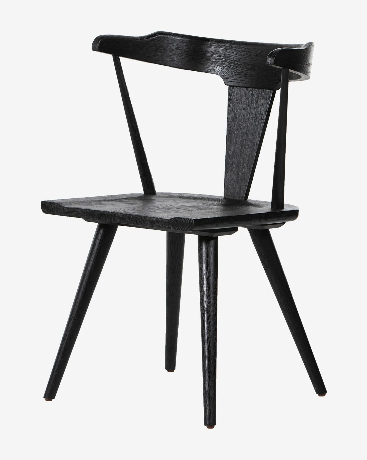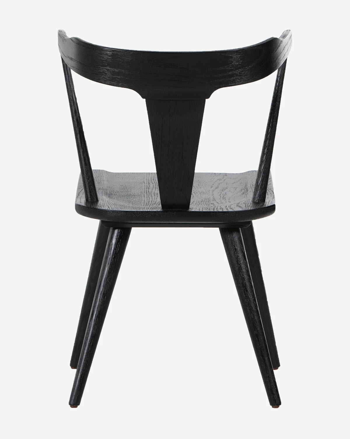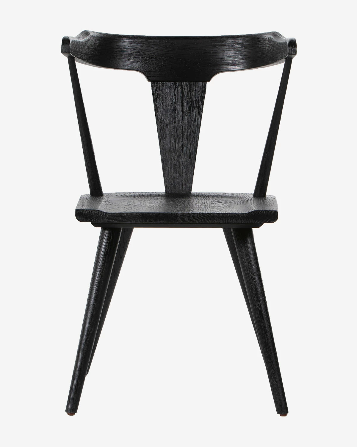 Redefining the classic mid-century Windsor vibe, our Ruthie Dining Chair features a yoked back and sculptural silhouette. With thoughtful attention to detail, its solid oak frame finished in a black or white hue highlights its natural knots and grains pulling movement through its structural form.