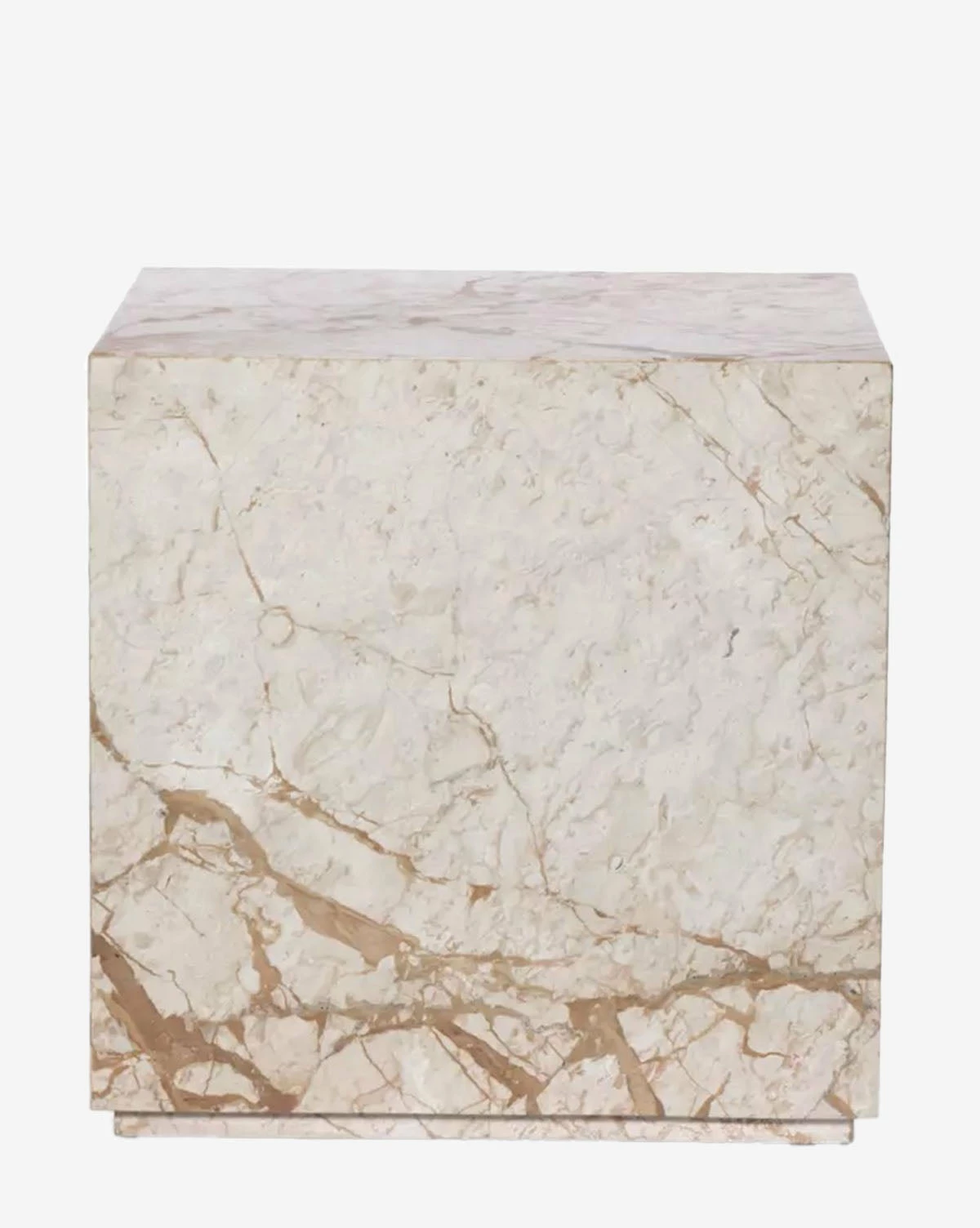 Simple and bold in structure, the Saoirse End Table is visually weighty and full of character. Made from solid taupe marble, the plinth-style end table brings sophistication to the corners of your home.
