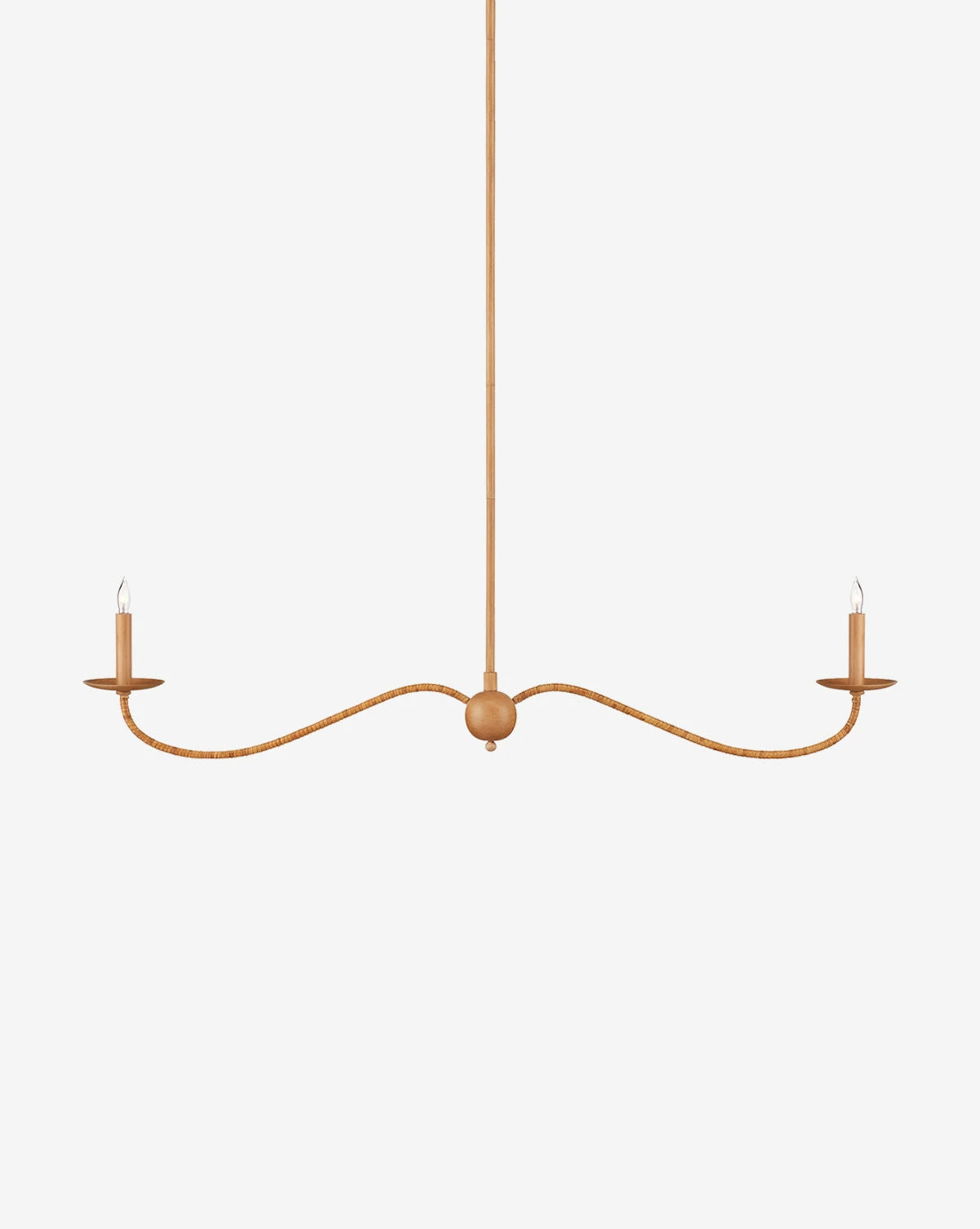 Impressive in both size and texture, the Saxon Linear Chandelier makes a statement in any large entry or dining room space. Its traditional design feels sophisticated, while rattan wrapped iron arms give this fixture a modern and organic update.