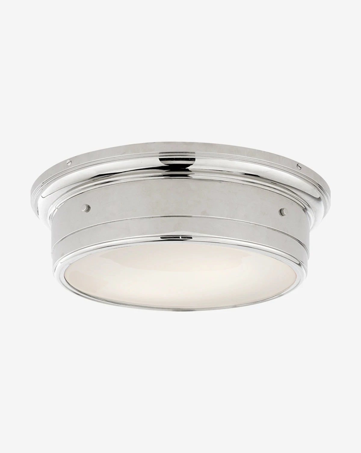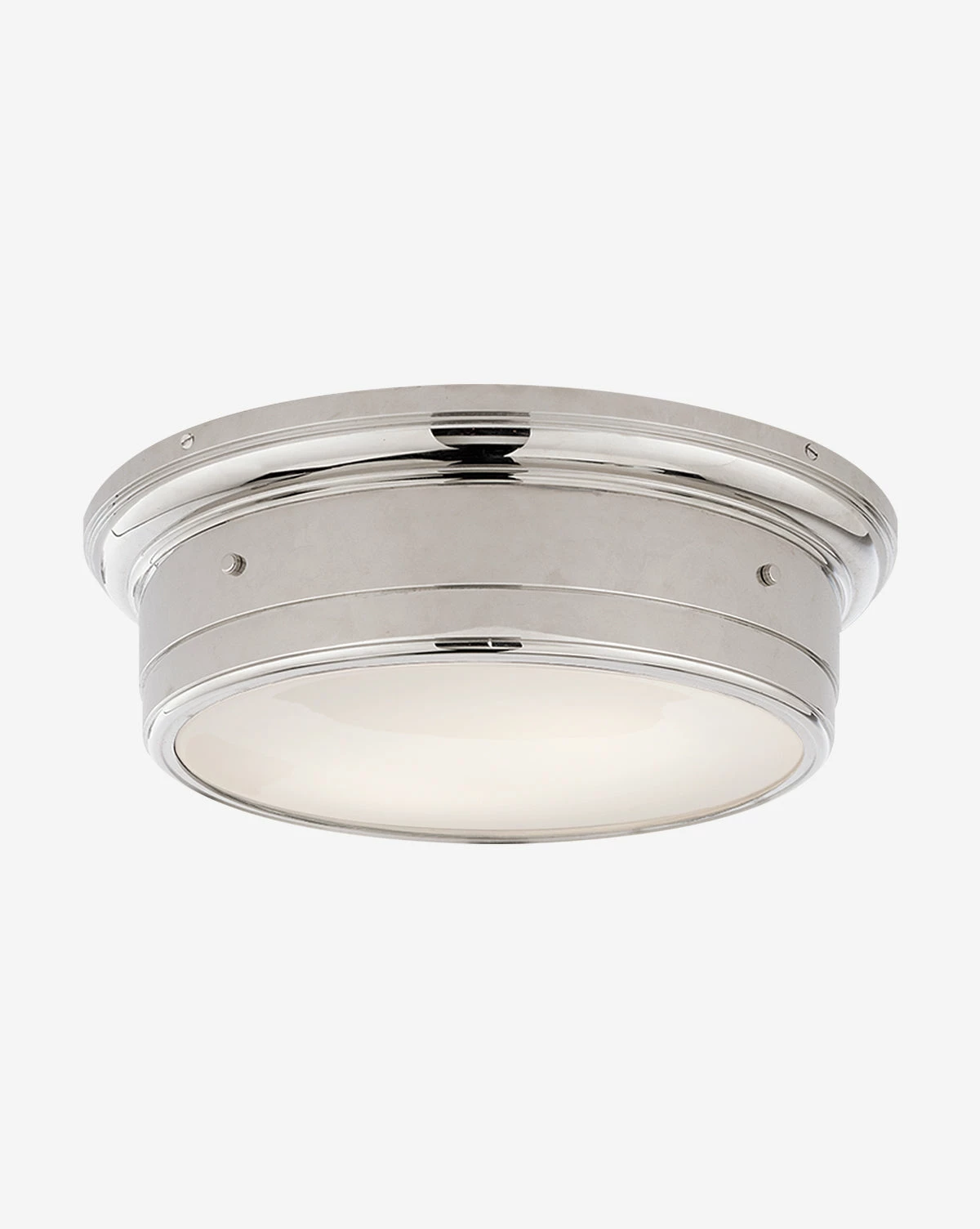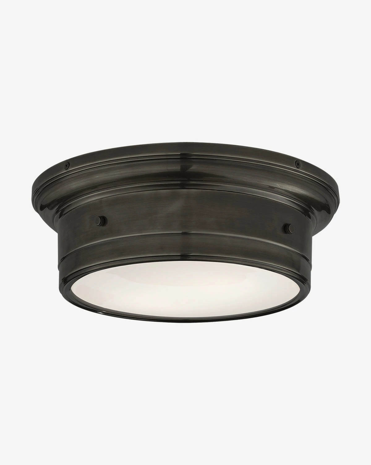 This blocky flush mount makes a statement in the most subtle way with it’s industrial details and rich finish options. Â