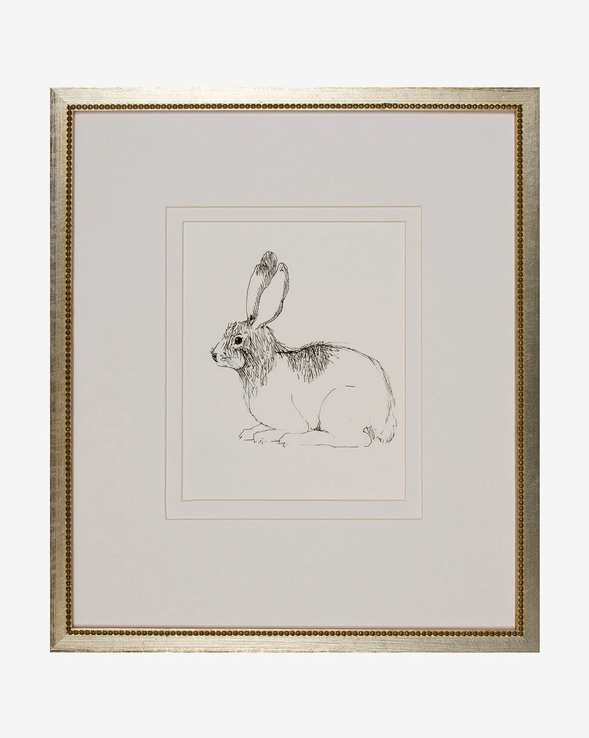 Subtle and imaginative, the Sketched Bunny I giclee print has a whimsical feel that nods to childhood fairytales. Mounted in a wood frame in a silver finish, this piece’s airy style and intricate linework bring detail to simplicity and give a refined yet playful tone to children’s rooms.