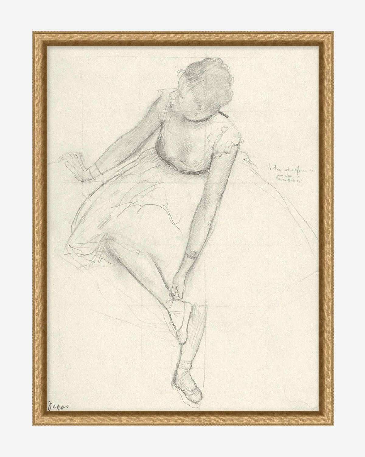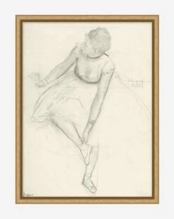 Elegant yet imaginative, Sketched Dancer is a giclee print on matte paper. Mounted in a wood, textured gold frame that is encased in standard glass, this dancer sketch brings a sense of wonder to children’s rooms. Â