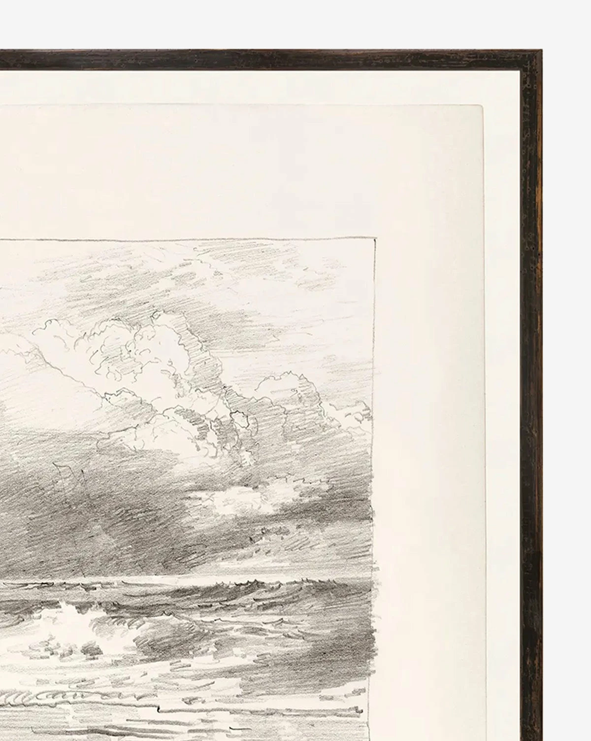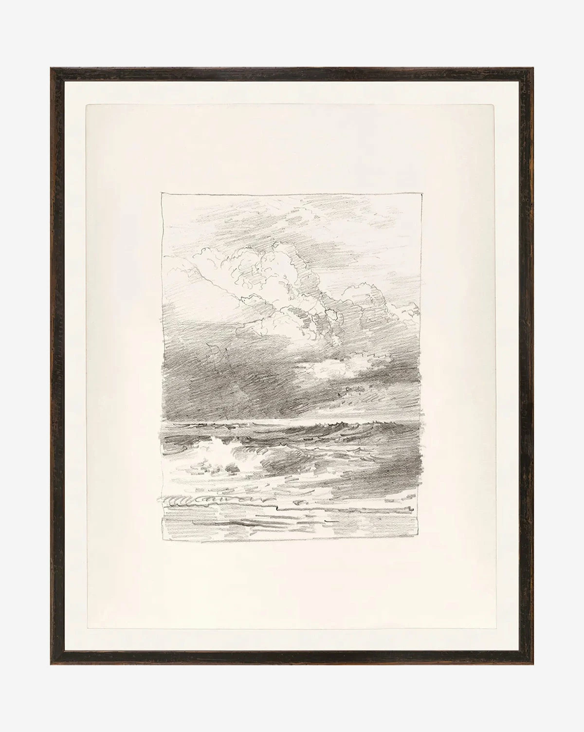 With expressive linework and a full composition, Sketched Study II has a mysterious yet inviting feel. The piece depicts a moody snapshot of a stormy shore. With a wood frame, the giclee print on paper brings gallery-quality materials to your space.