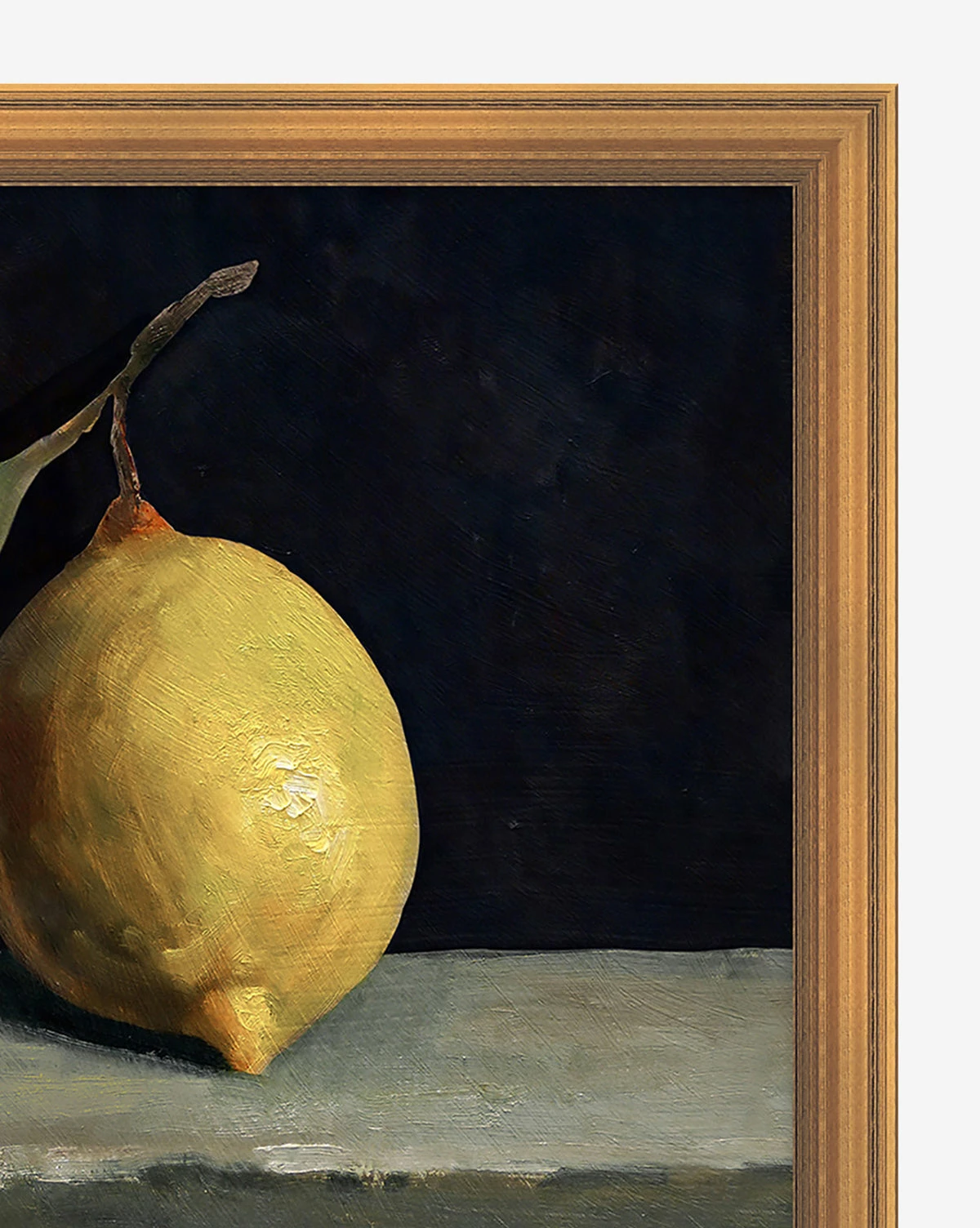 With a simple aesthetic, depth and contrast take center stage in our Still Life with Lemon portrait. The crisp yellow color stands out against the black backdrop, as a simple frame adds the perfect amount of structure. Paired with our other fruit portraits, or as part of an eclectic gallery wall, this piece brings an added layer of dimension to your home design.