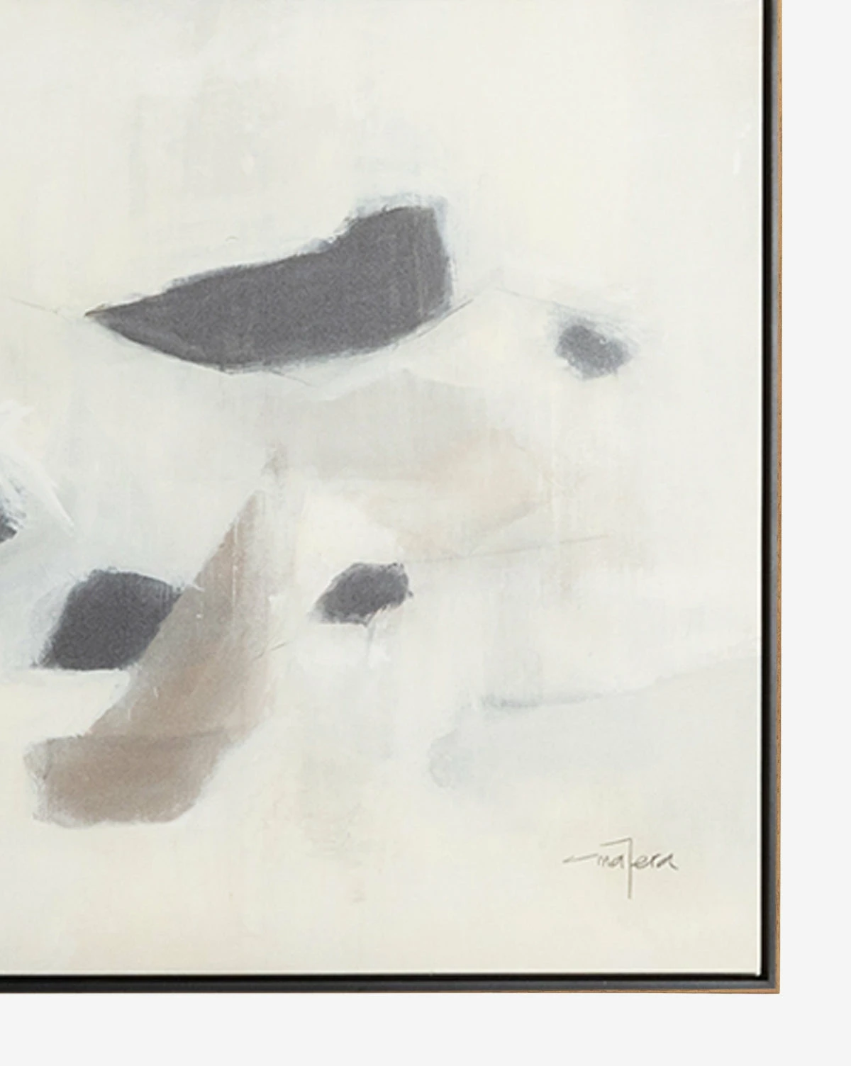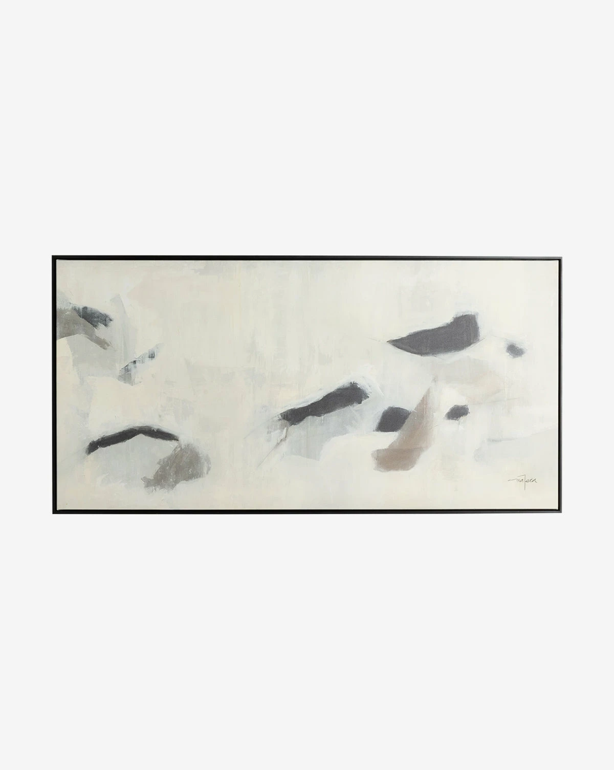 Painted by Matera, a Mexico City native with an eye for abstract expressionism, Stones makes thoughtful use of contrast and negative space. Inspired by the outdoors and shifts in the weather, her paintings are an emotional expression of nature’s organic beauty. Framed in black American maple, this neutral abstract artwork is printed on matte canvas with acrylic glazing. Â