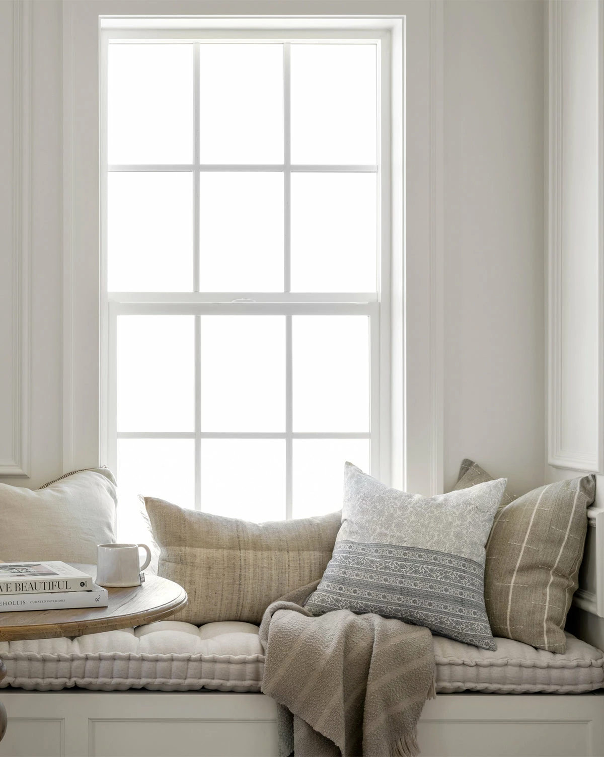 With a neutral palette, the Suzie Pillow Cover is highly textural in its pattern. The beautiful silk and linen material has natural detail in the fabric, complementing the tan block stripe that is offset in the pillow cover pattern. Complete with fringed edges, this lumbar pillow adds simple dimension to pillow vignettes. Â
