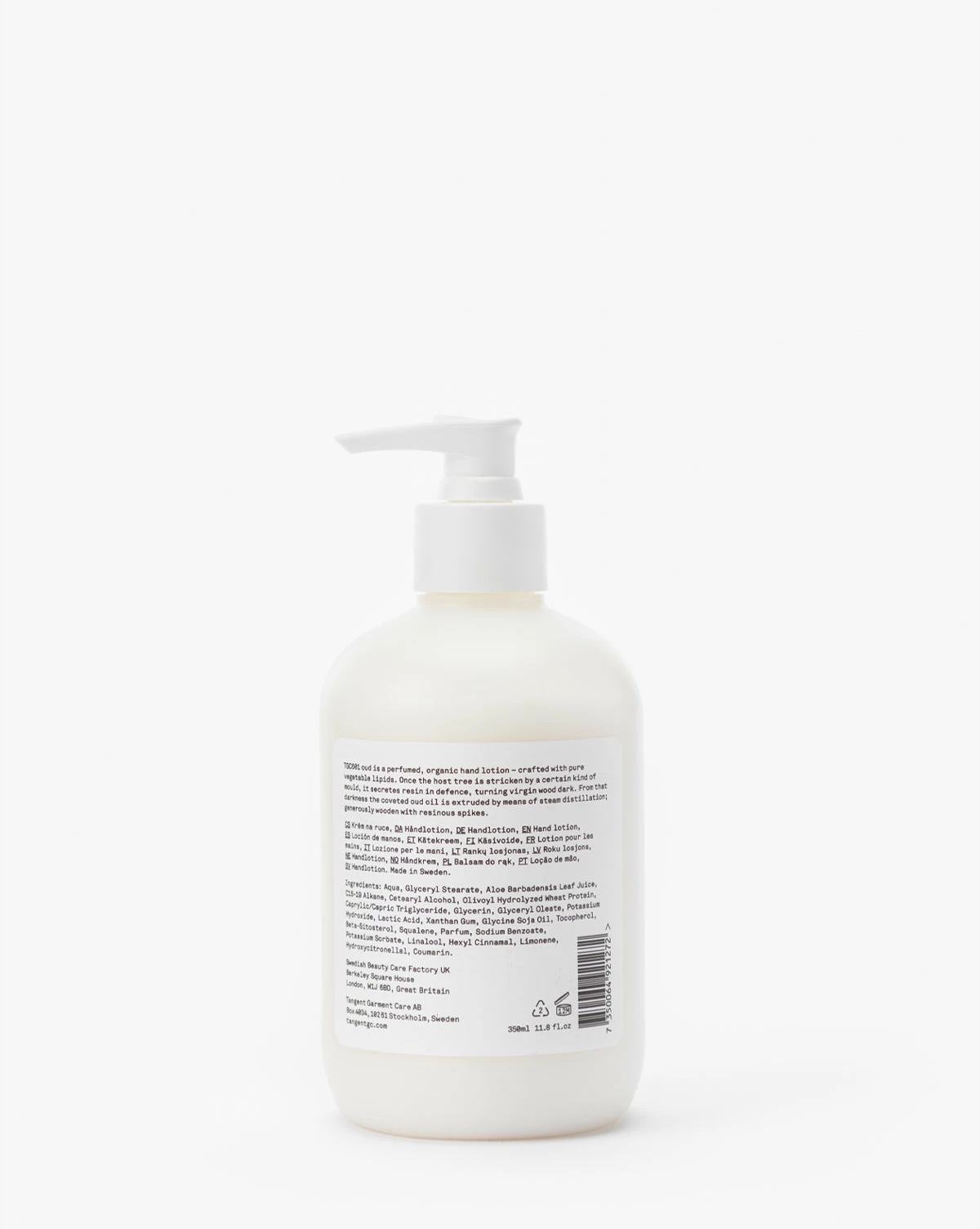 Featuring a luxurious woody and herbal scent from the coveted oud tree oil, the Tangent Oud Hand Lotion not only adds an uplifting scent to your everyday, but moisturizes your hands with ease. The lotion is designed to bring lasting moisture to your skin and is presented in a recyclable bioplastic container.