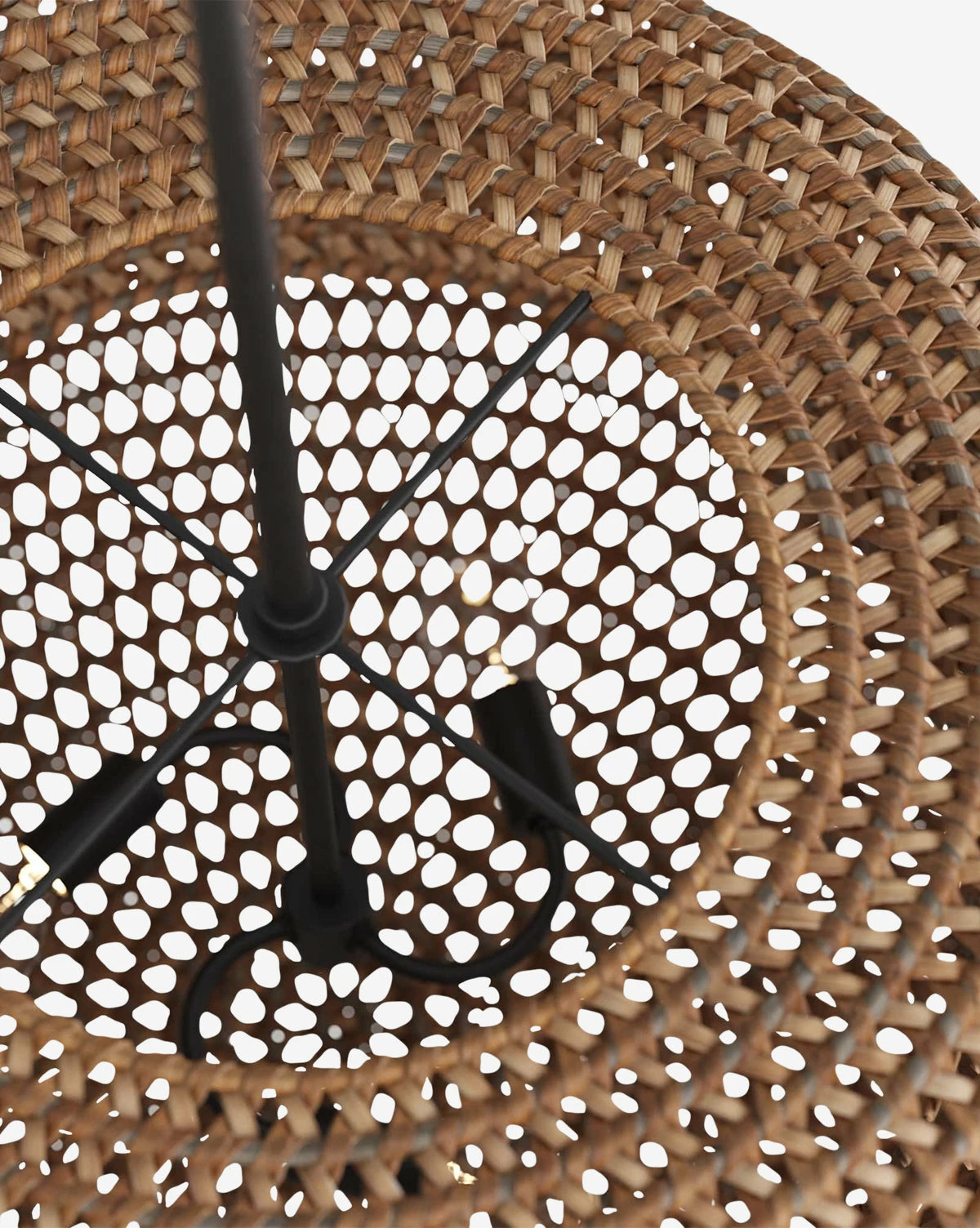 With a modern meets organic design, the Tanya Chandelier is crafted from rattan and steel in a bronze finish. Wide and shapely, the woven rattan in a natural hue brings subtle texture and an airy feel to your decor.