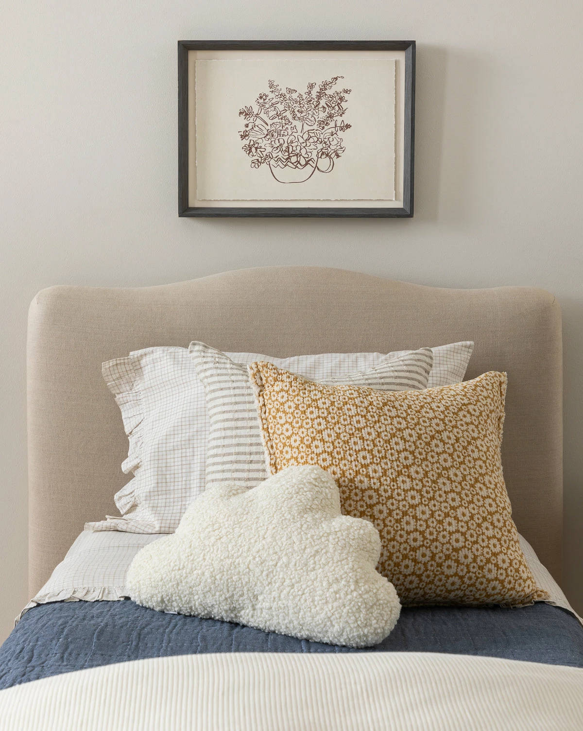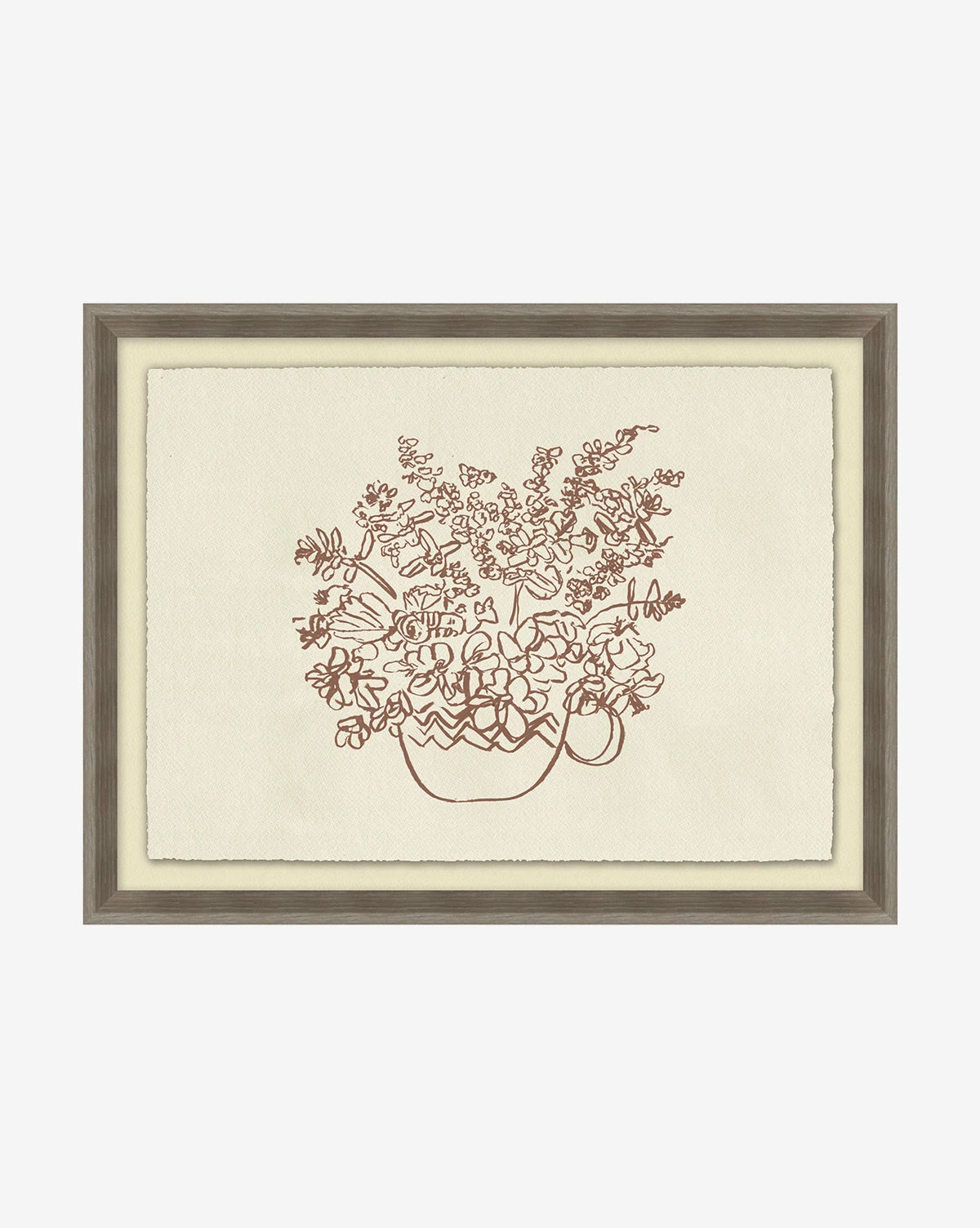 With simple brown linework giclee printed on antique white watercolor paper, Tea Cup of Flowers is whimsical and inviting. Presented within a wood frame with a charcoal finish, the piece brings a gentle touch to any room.