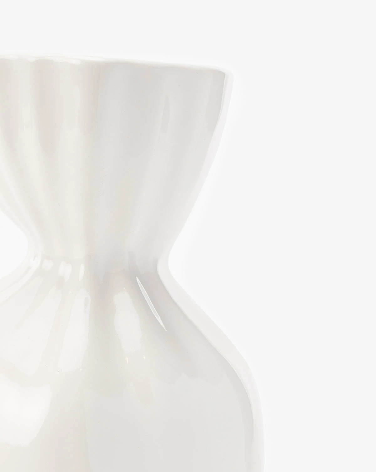 With a unique form, the Thessaly Vase brings a modern feel to your built-in shelves or console table. The vase is made from stoneware and finished with a clean white glaze, bringing a neutral element to your styling with its sculptural design.