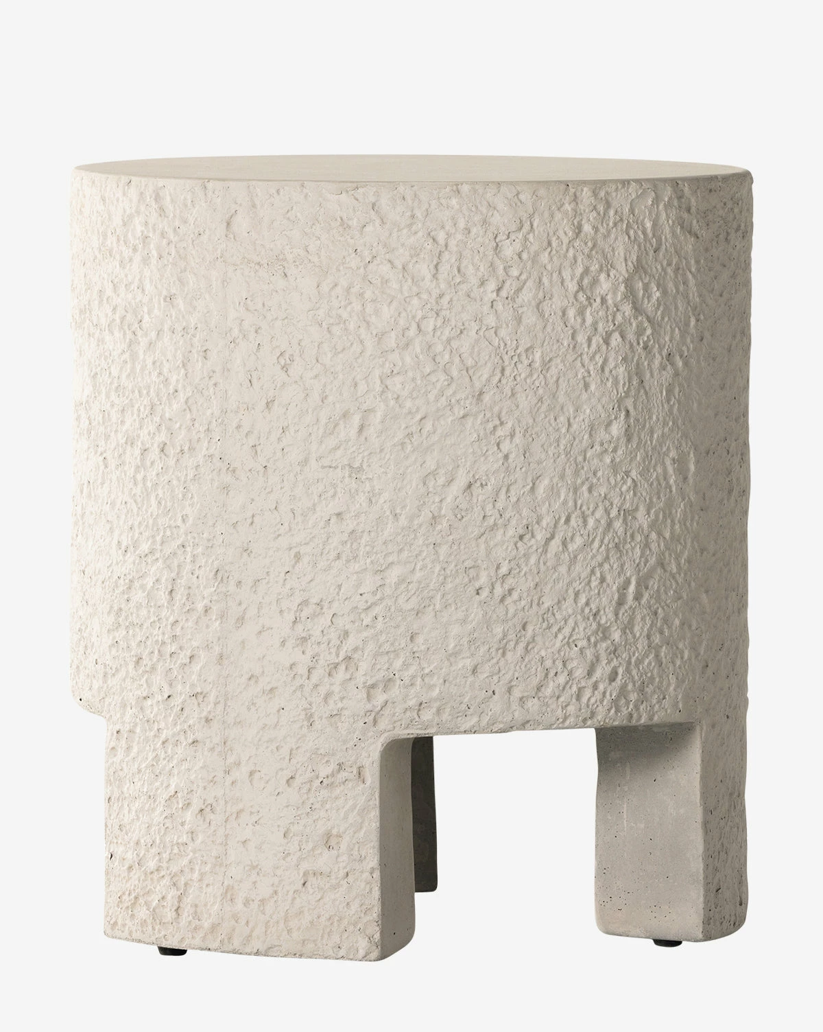 A cylindrical shape lifted by cutout legs gives the Tiah Outdoor End Table a contemporary, geometric look that pairs well with its smooth top. This simple yet modern design is made from concrete in a white finish, making it easy to style with your current outdoor decor.