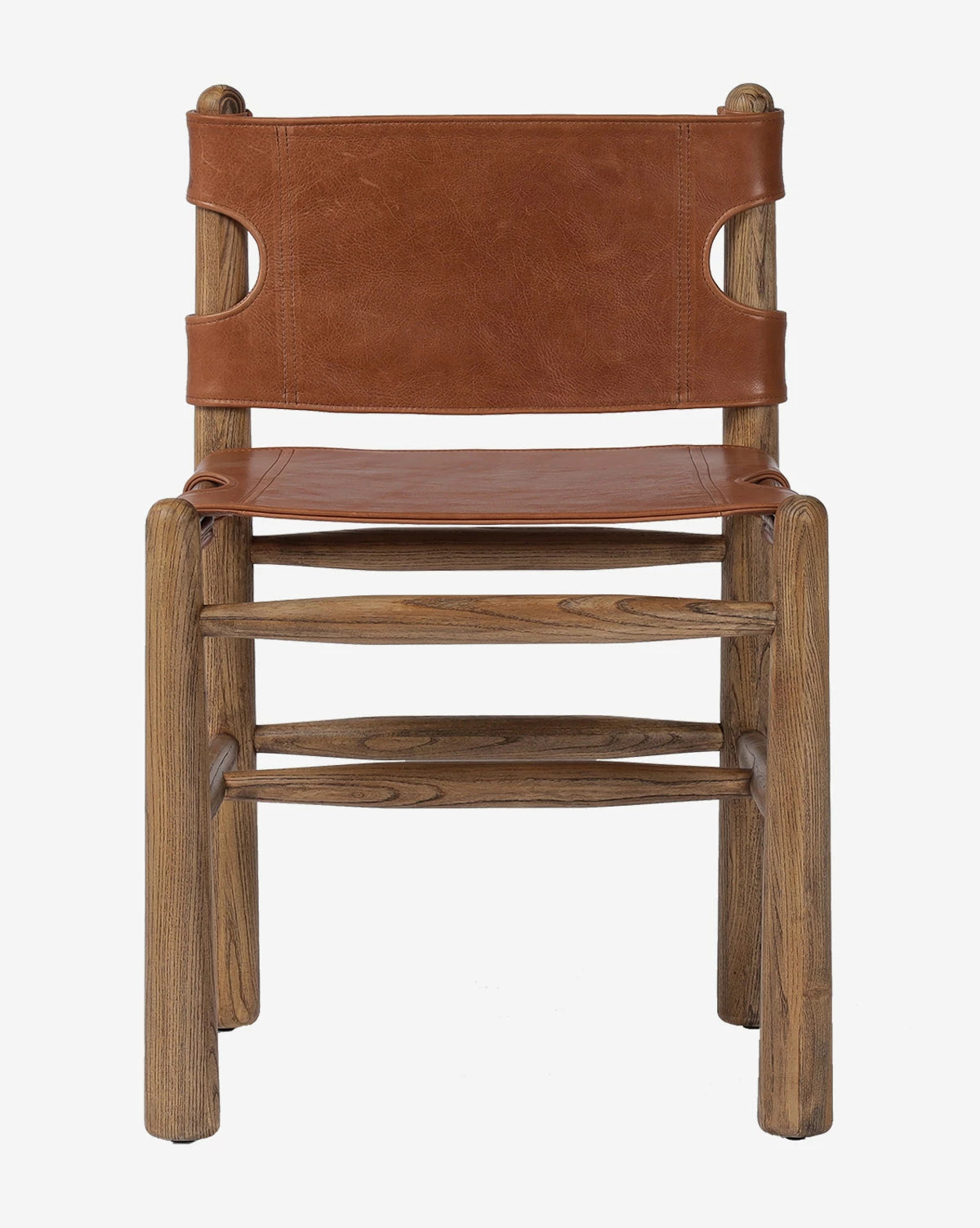 Inspired by historical French design, the Tierney Chair holds a leather seat back and seat. The mixed materials provide a sophisticated sense of comfort, while the unique frame brings a striking detail to your space.