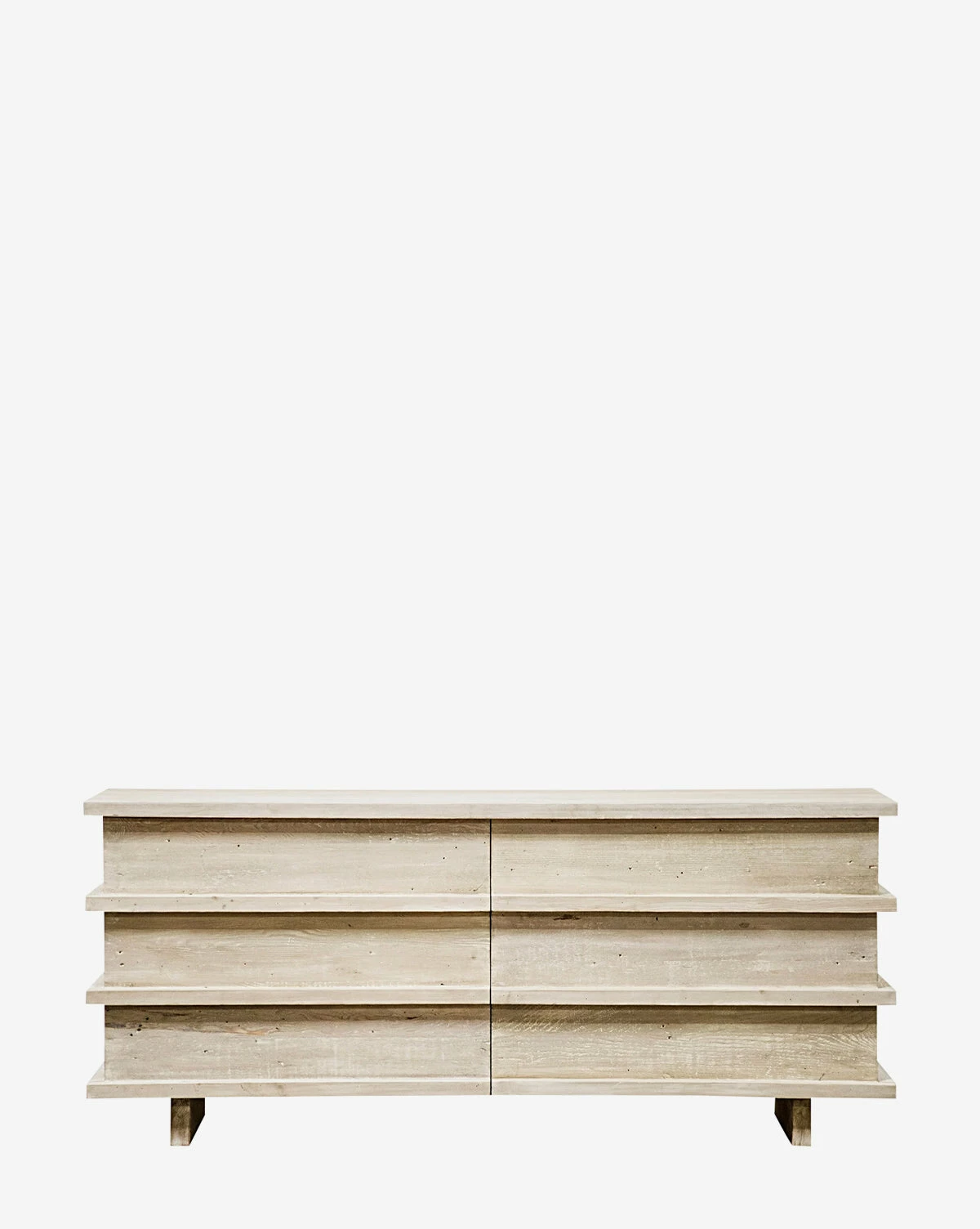 Crafted from reclaimed Douglas Fir, our Uli Dresser makes a bold statement of both form and function. Styled in your bedroom as the base of the perfect vignette, this dresser’s organic shape features plenty of storage with its 6-drawer design.