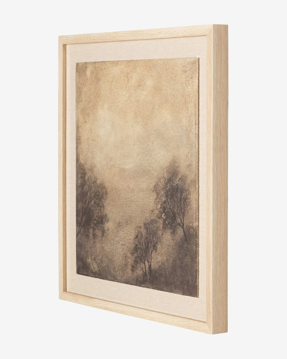 Moody and abstract, Viewpoint is inspired by the Texas Hill Country, with faint brushwork representing a lush landscape. The natural palette is complemented by a hand-crafted white oak frame. Printed on textured fine art paper, the artwork has a museum-quality feel. Â