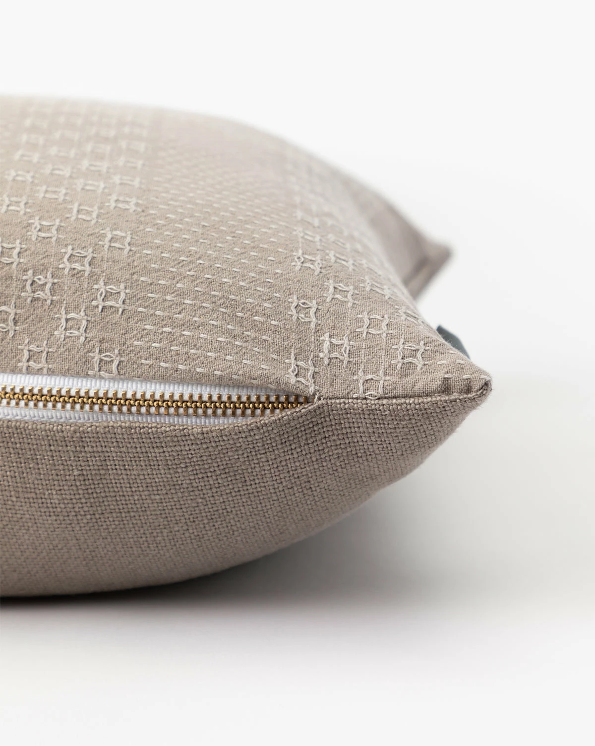 Woven in Thailand, the light gray cotton fabric with a raised stripe embroidery of the Vintage Gray Crosshatch Pillow Cover No. 4 lends subtle sophistication to your textile styling. As part of our Vintage Collection, this vintage pillow cover was hand-selected by our team for the unique character, heirloom quality, and beauty it will add to the home.Â