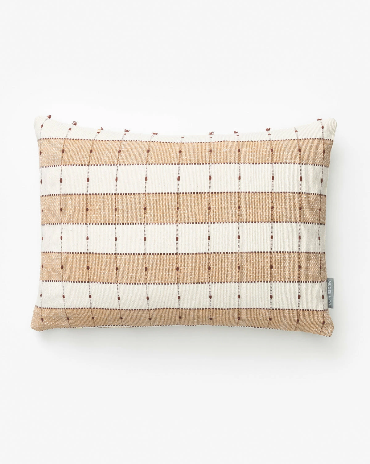 Textural and refined, Vintage Tan Check Pillow Cover No. 6 features an ivory and tan checkerboard stripe with dark brown lines and dots for an added layer of detail. As part of our Vintage Collection, this vintage pillow cover was hand-selected by our team for the unique character, heirloom quality, and beauty it will add to the home.Â