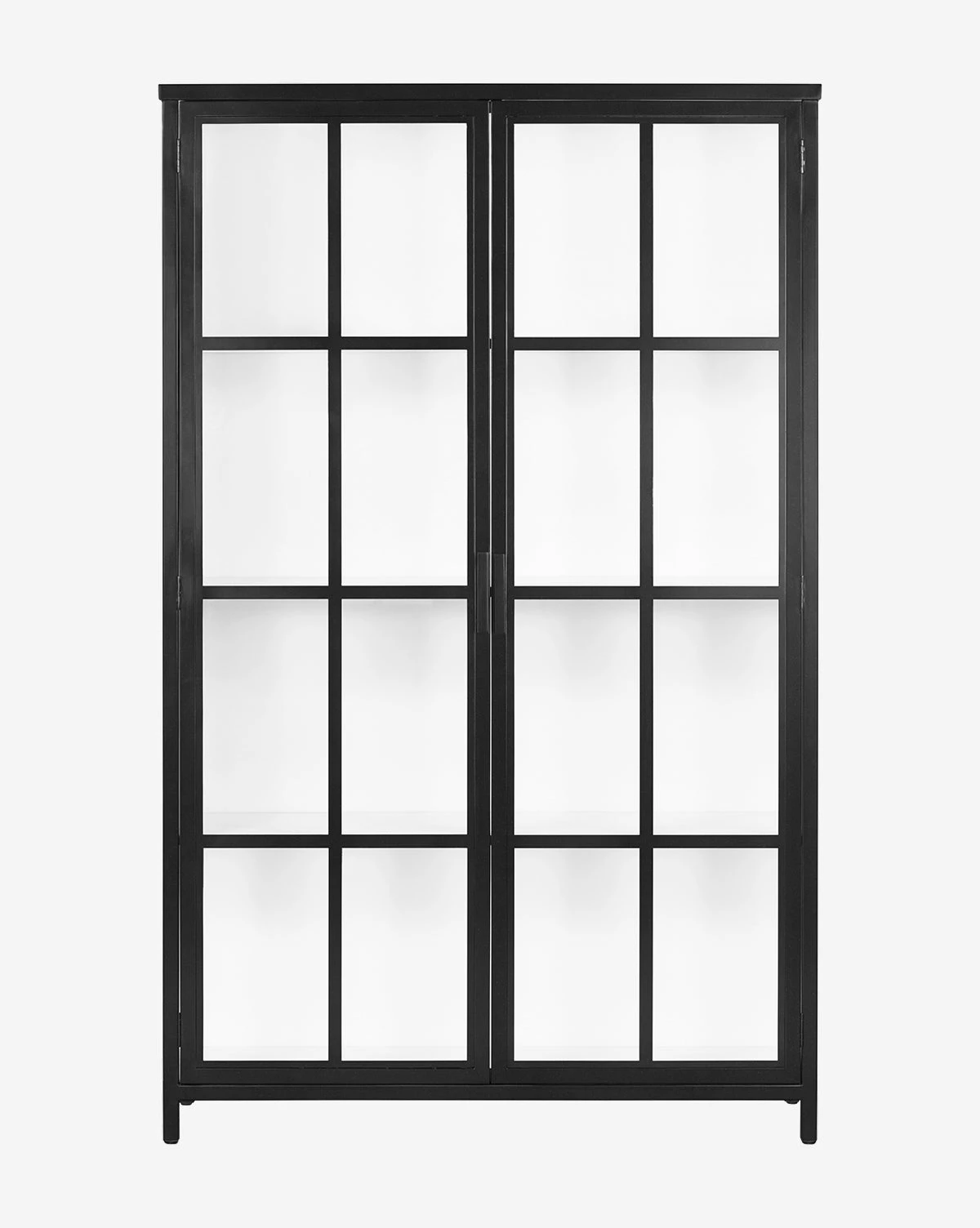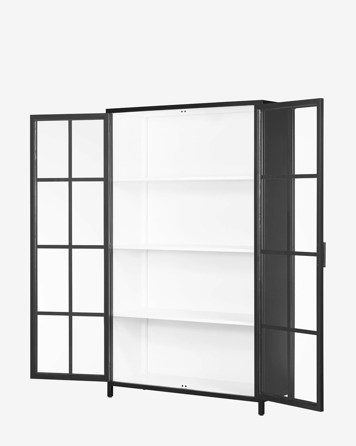 In a contrasting design that frames your styled pieces, the Waylon Cabinet has a black-finished iron frame fitted with tempered glass. Its panes of glass are windows to the piece’s entirely white interior, which showcases your favorite decor in an effortless yet dressy way.
