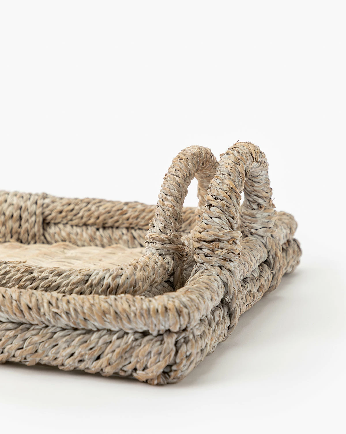 Made from tightly woven rattan, the Whitewashed Handled Tray boasts both form and function. Its white textural rattan sides and handles add welcome detail to a coffee table or console. Spacious and durable, the tray flawlessly displays decor from dried botanicals to books.