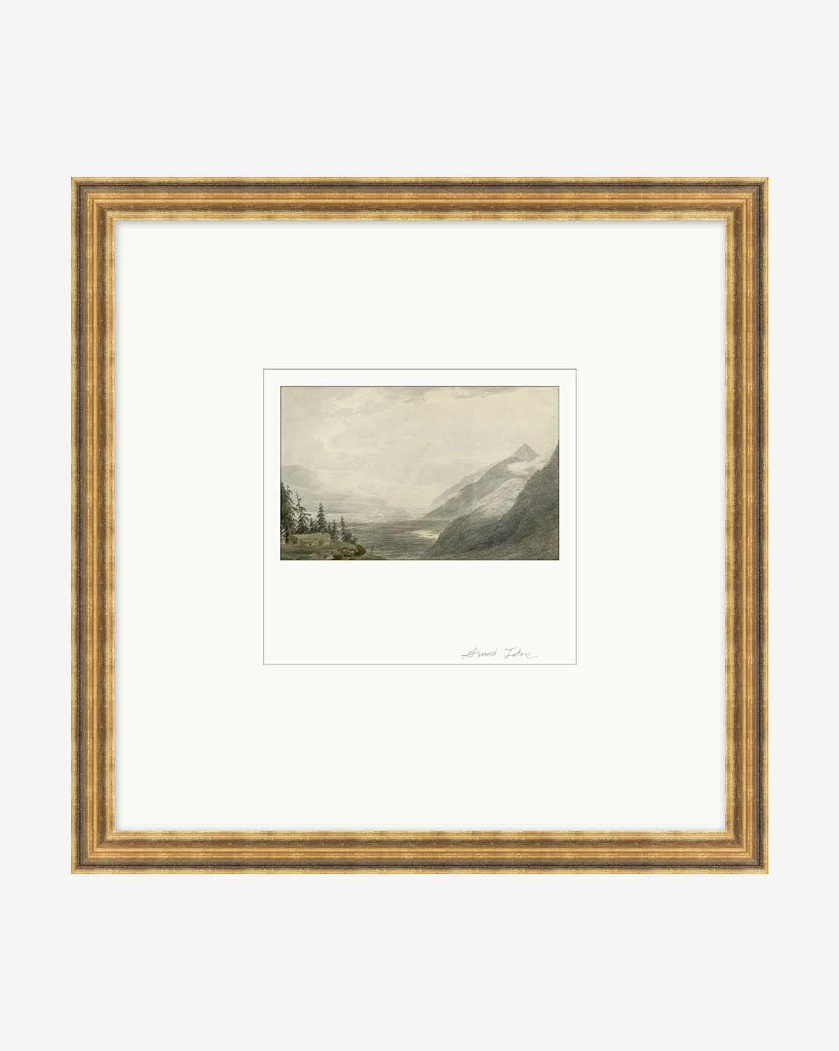 Conveying intricate detail in an ethereal mountain landscape, Window to the Mountains is a captivating piece through its use of color and its unique framing. A giclee print on paper that is mounted on double mats, the piece is finished in an antique gold and black frame for a gallery-quality treatment.