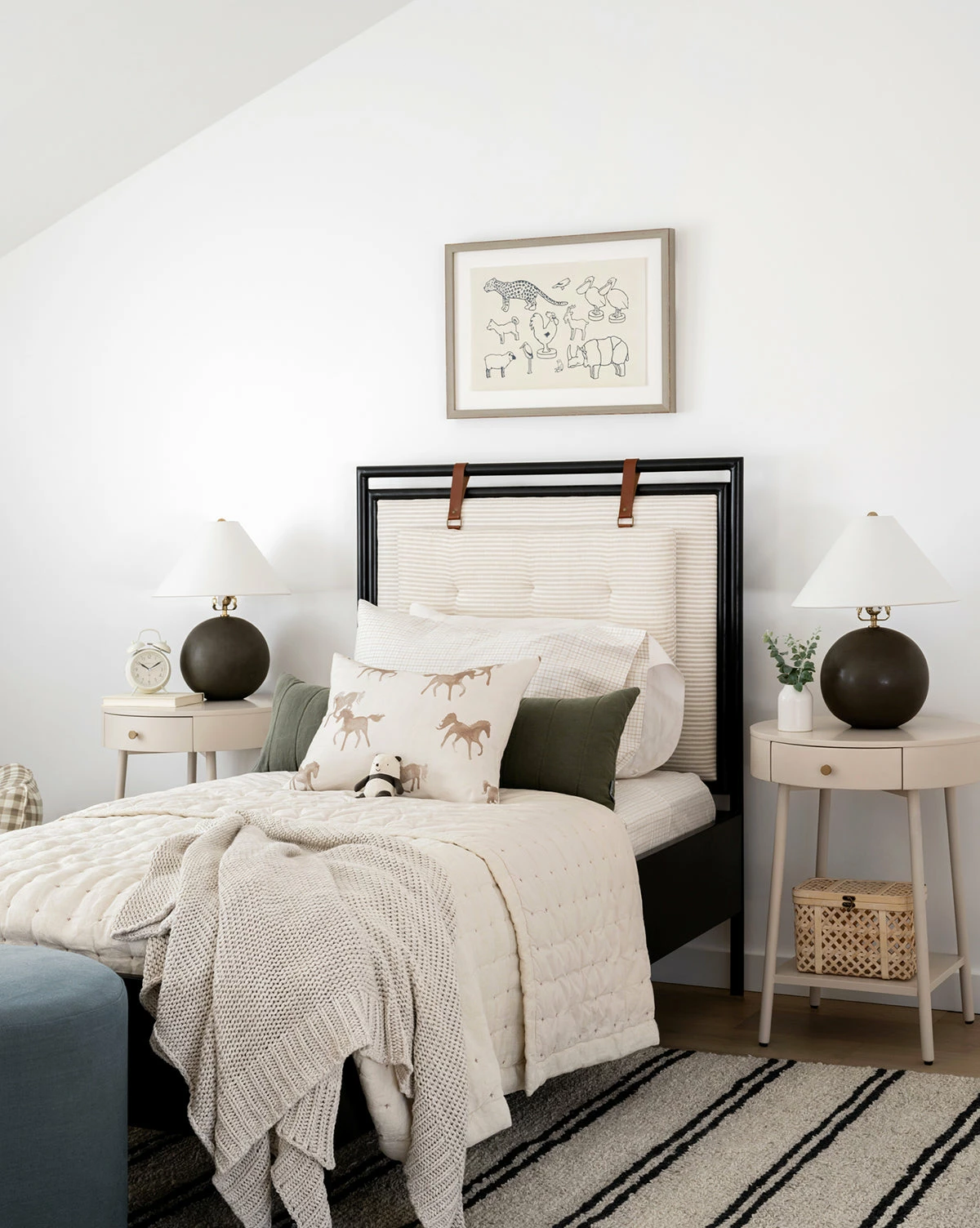 Clever and whimsical, the Zoo Cut-Outs is a giclee print on paper with straight-cut edges and floated on mat. Complete with plexiglass and mounted in a gray frame, this piece is composed of simple but bold linework that brings imagination to the kid’s room. Â